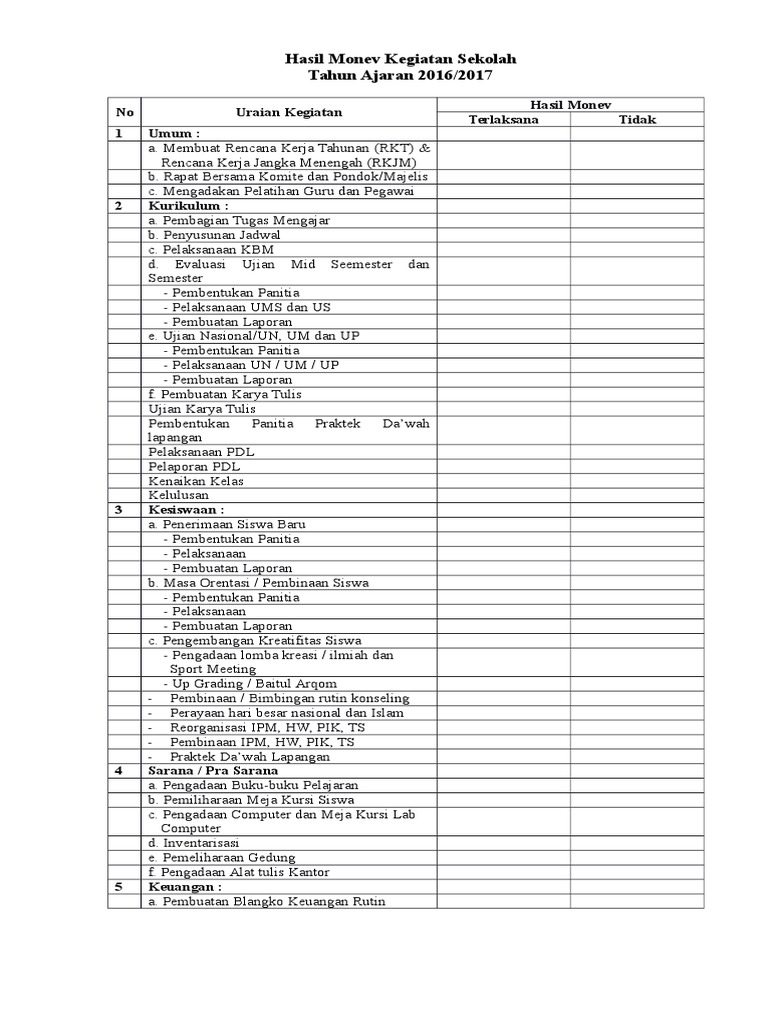 Contoh Laporan Monitoring Dan Evaluasi Kegiatan Sekolah Nusagates