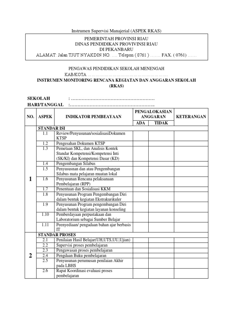Instrumen Supervisi Manajerial Pengelolaan Keuangan Sekolah Pdf
